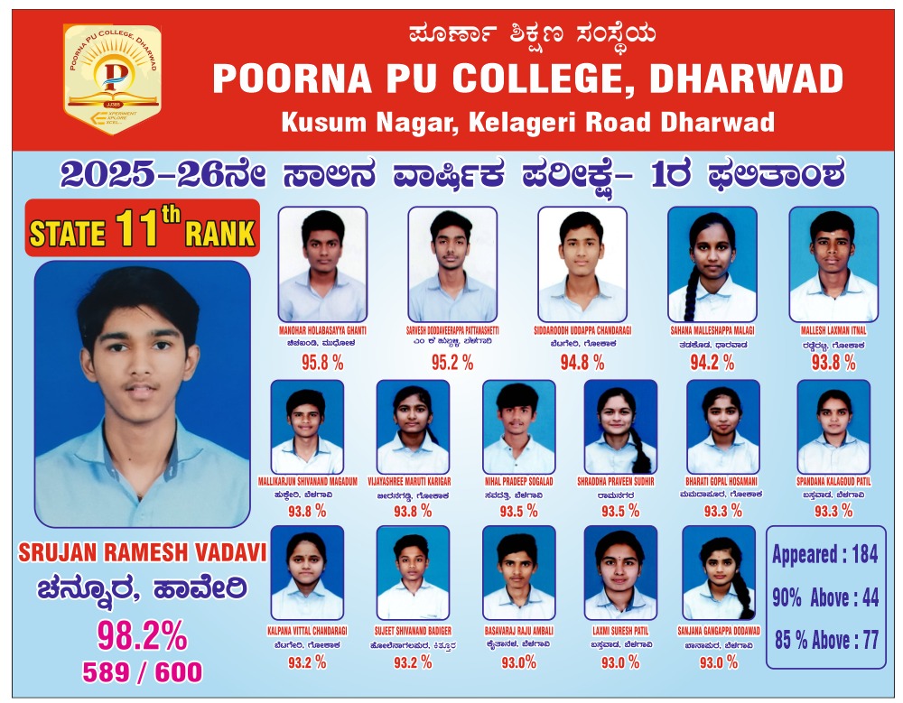 POORNA SHIKSHANA SAMSTHE stands testimony to the high professional standards aimed to provide quality education to builds leadership quality, knowledge, self confidence in students.